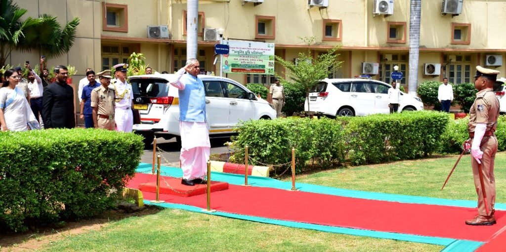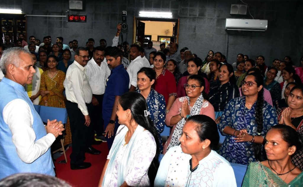 કૃષિ વિભાગના વિભાગીય કક્ષાના વિસ્તરણ કાર્યકરો અને અધિકારીઓ સાથે સંવાદ કરતા રાજ્યપાલશ્રી આચાર્ય દેવવ્રતજી