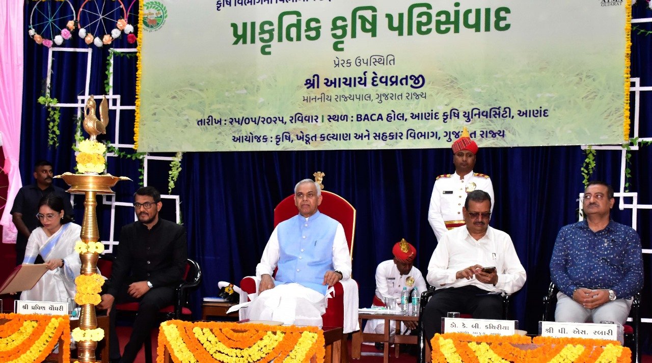 આણંદ કૃષિ વિશ્વવિદ્યાલયના સહયોગથી રાજ્યના કૃષિ, ખેડૂત કલ્યાણ અને સહકાર વિભાગ દ્વારા યોજાયેલા પ્રાકૃતિક કૃષિ પરિસંવાદમાં રાજયપાલ શ્રી આચાર્ય દેવવ્રતજીએ ઉપસ્થિત રહી અમદાવાદ, આણંદ, ખેડા,ગાંધીનગર અને બોટાદ સહિત પાંચ જિલ્લાના ગ્રામસેવક, વિસ્તરણ અધિકારી, આત્મા અને બાગાયત વિભાગના અધિકારીઓ, કૃષિ સખીઓ, પ્રગતિશીલ ખેડૂતો અને કોમ્યુનિટી રિસોર્સ પર્સન સાથે સંવાદ કર્યો હતો.