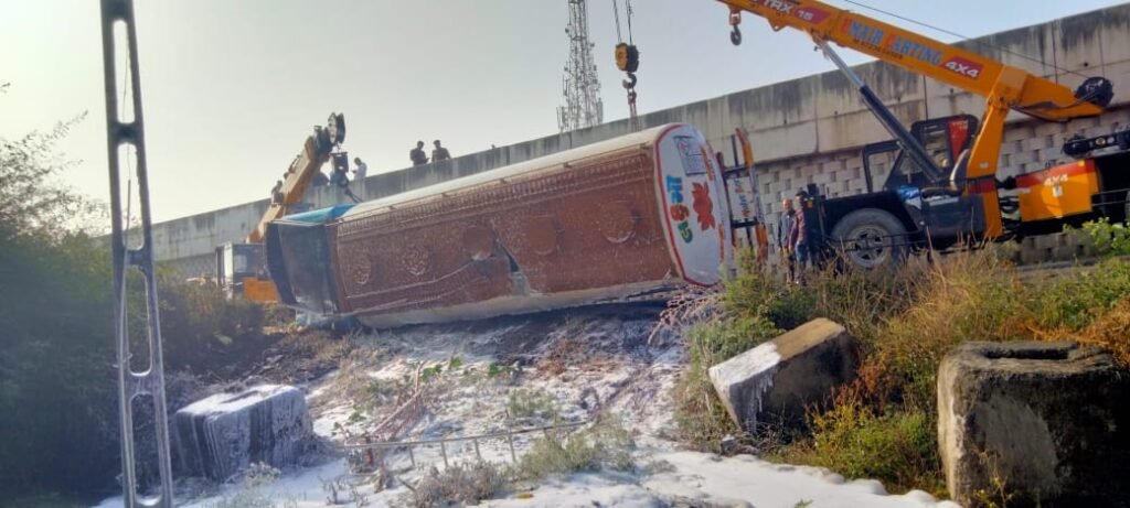 नेशनल हाईवे-48 पर ज़ाइलीन केमिकल से भरा टैंकर पलटा, समय रहते आग का खतरा टला