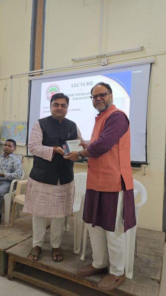 आणंद:(गुजरात) सरदार पटेल विश्वविद्यालय के राजनीति विज्ञान विभाग द्वारा राष्ट्रीय युवा दिवस के अवसर पर एक प्रेरणादायी विशेष व्याख्यान का आयोजन किया गया। यह कार्यक्रम विश्वविद्यालय के कुलपति प्रो. निरंजन पटेल के मार्गदर्शन में आयोजित हुआ, जिसमें स्वामी विवेकानंद के विचारों और आदर्शों पर विशेष रूप से प्रकाश डाला गया।